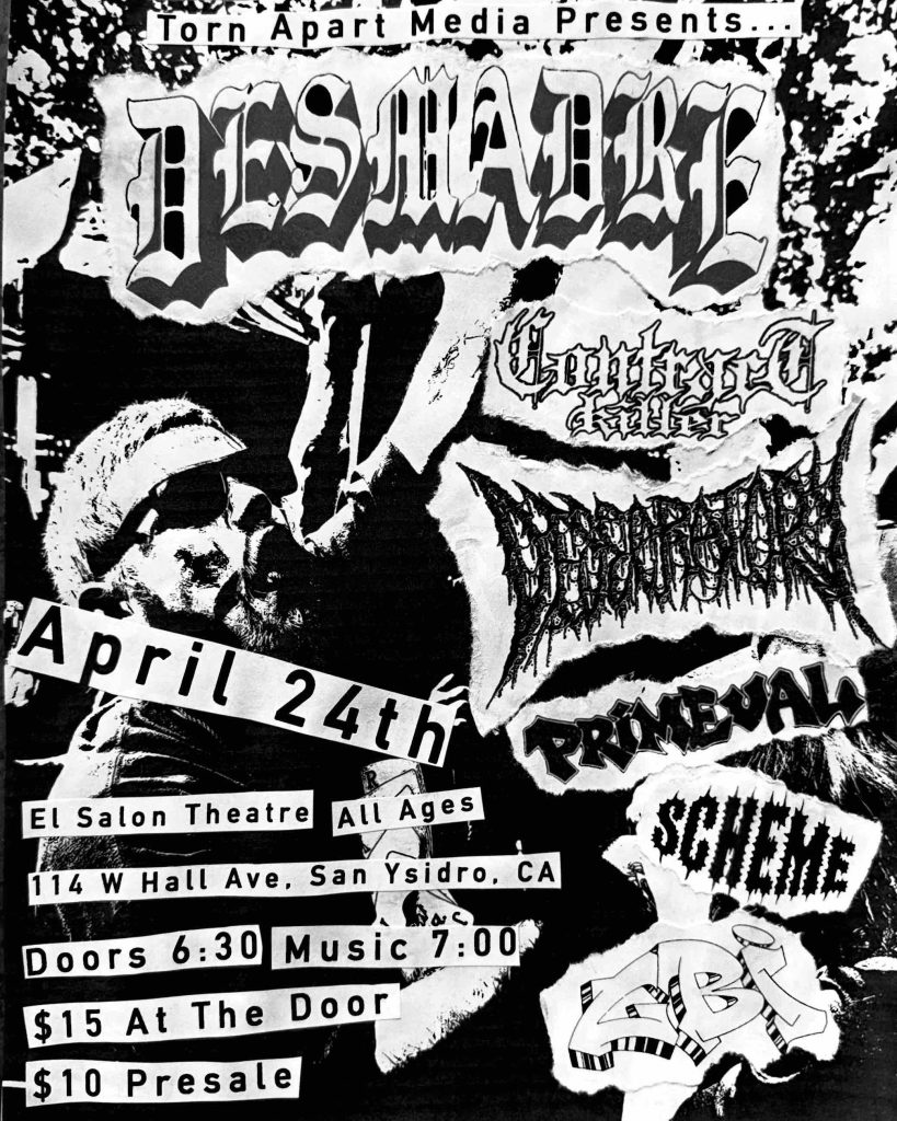 DESMADRE, Contract Killer, Desecratory, Primeval, Scheme, & GBI will be performing at El Salon Theatre in San Ysidro, CA.