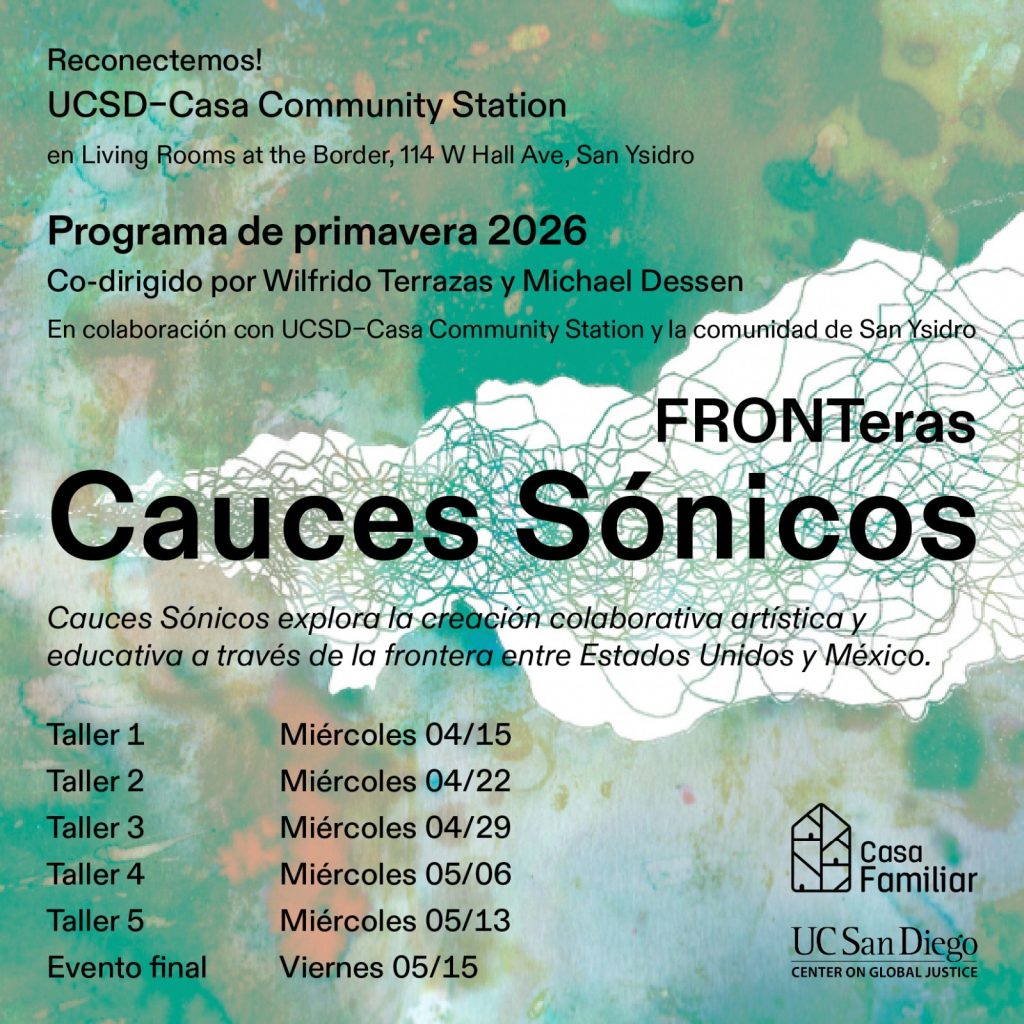 This is a spring program called «FRONTeras Cauces Sonicos,» led by Wilfrido Terrazas and Michael Dessen, in collaboration with the UCSD Center for Global Justice.
