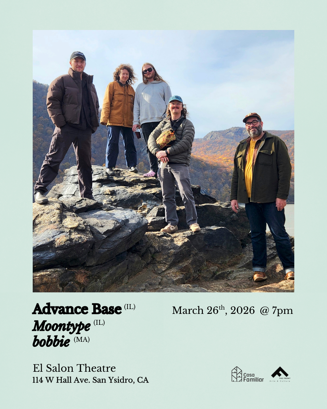 Advance Base will be performing at El Salon Theatre as part of their Spring US tour supported by Moontype & bobbie. Wednesday, March 26th, 2026 Doors open at 7:00pm Show starts at 8:00pm This ...