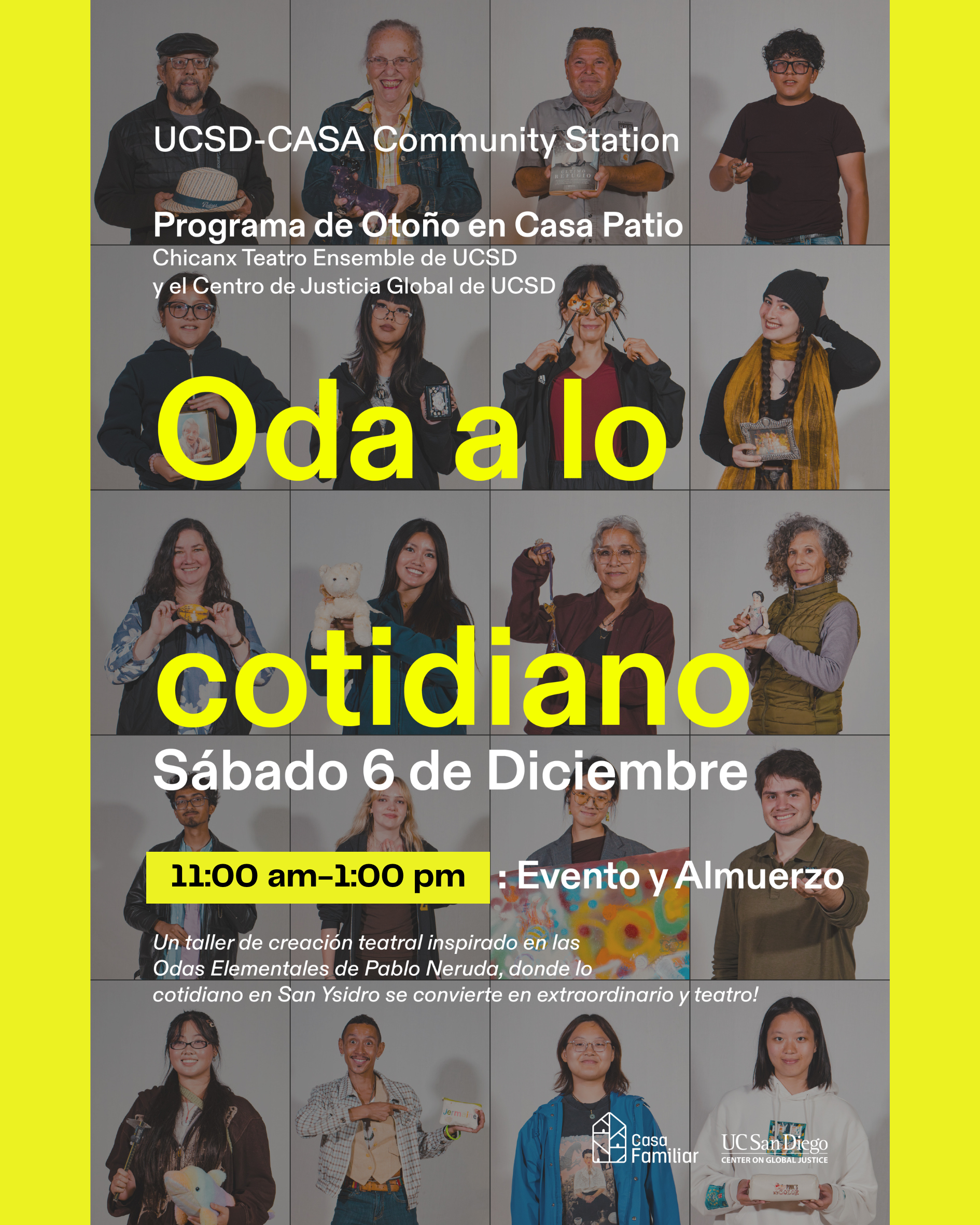 Oda a lo cotidiano: CASA – UCSD Fronteras Presentation PÚBLICADO EN NOVIEMBRE 5, 2025 POR THEFRONTGALLERY Join us for an evening performance of «Ode to the Everyday» created by San Ysidro residents & UCSD students. ... |