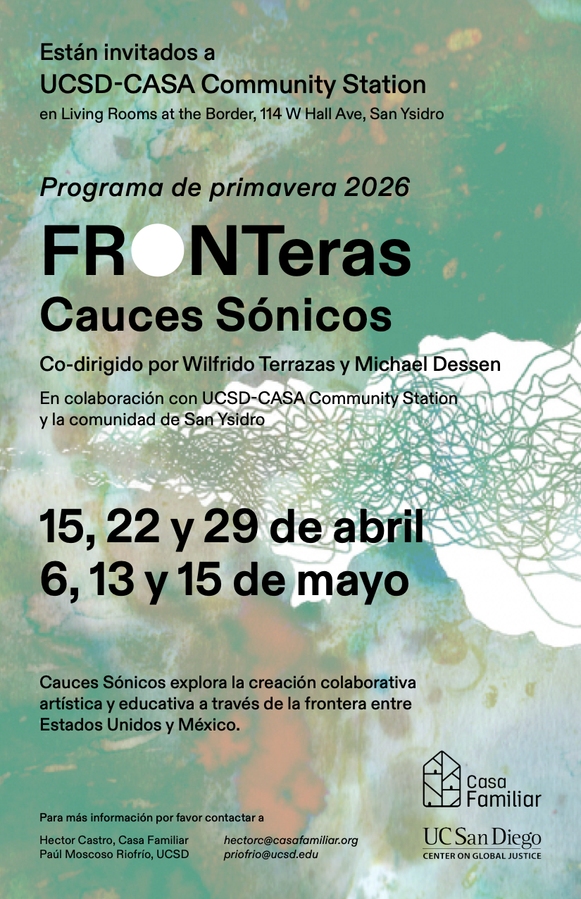 You are invited to the next workshop presented by the UCSD-CASA Community Station! This is a spring program called «FRONTeras Cauces Sonicos,» led by Wilfrido Terrazas and Michael Dessen, in ...